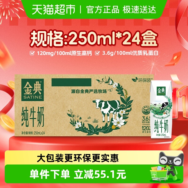 【超市独家】伊利金典纯牛奶整箱优质蛋白高钙学生家庭早餐囤货装