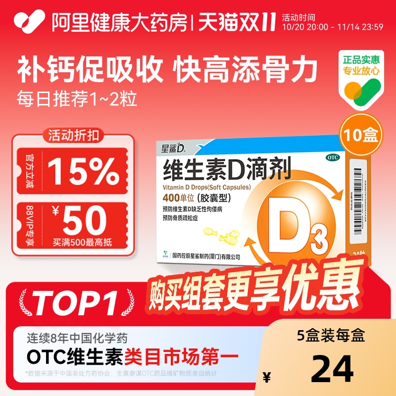 星鲨维生素d3新生儿维d滴剂儿童钙片碳酸钙成人维生素成长赖氨酸