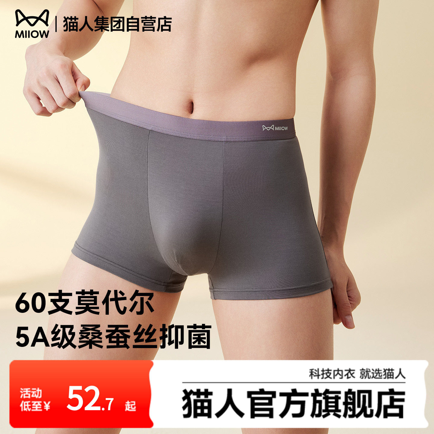 猫人2026新款男士内裤莫代尔抑菌透气四角运动平角大码高弹裤衩