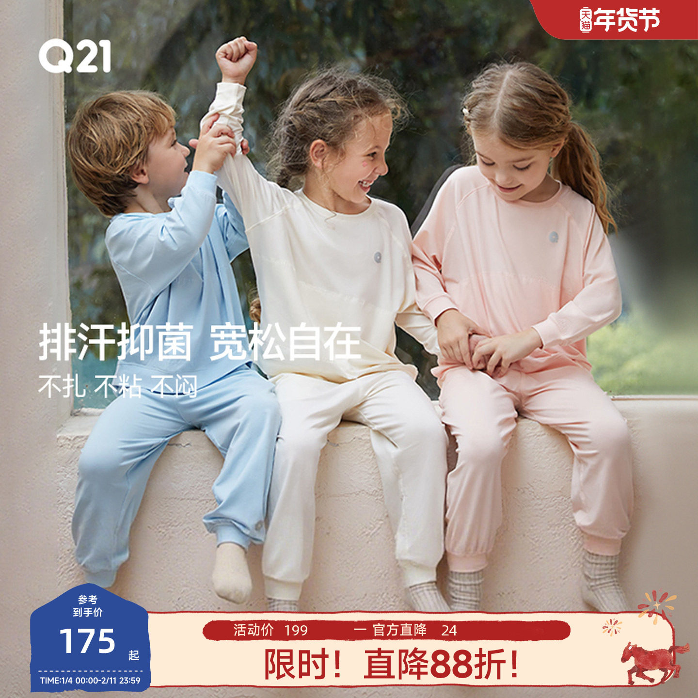 【papi推荐】Q21儿童家居服男孩女童睡衣亲子款宝宝透气排汗抑菌
