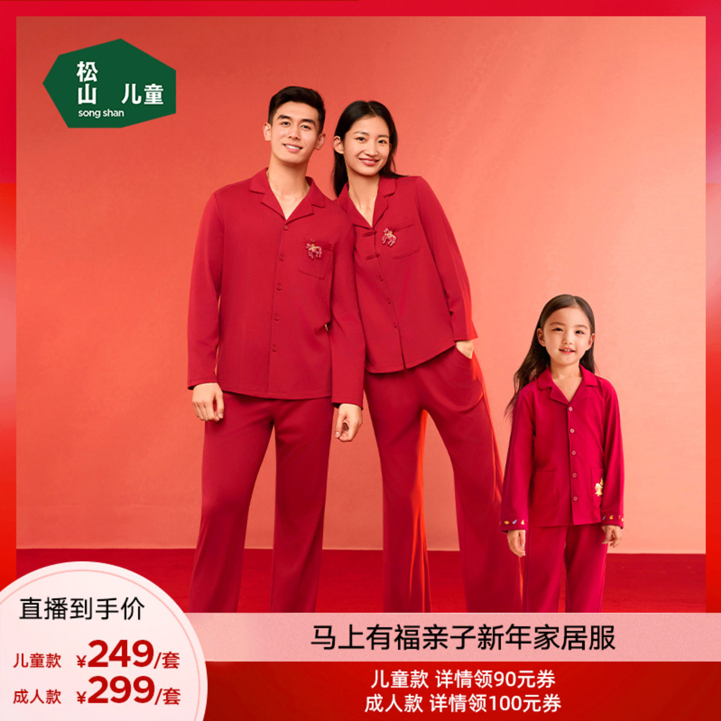 松山棉店福禄安哥拉红儿童亲子居家服红色男女童睡衣长袖套装