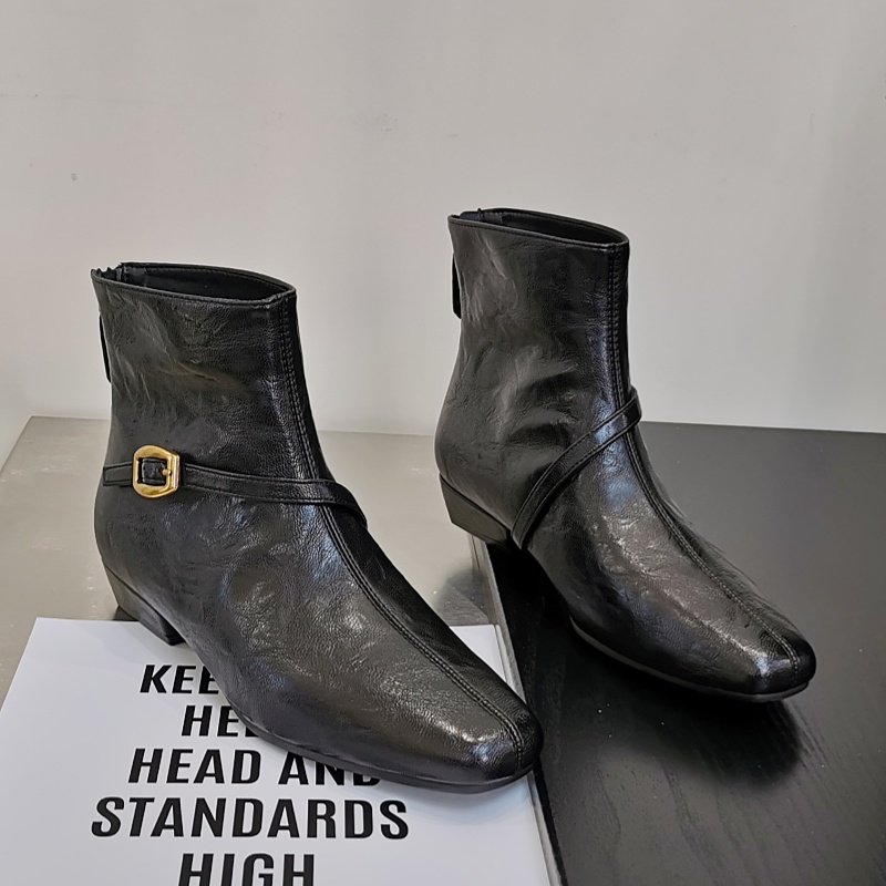 法式气质方头粗跟短靴女2025秋冬新款后拉链显瘦时装靴洋气瘦瘦靴