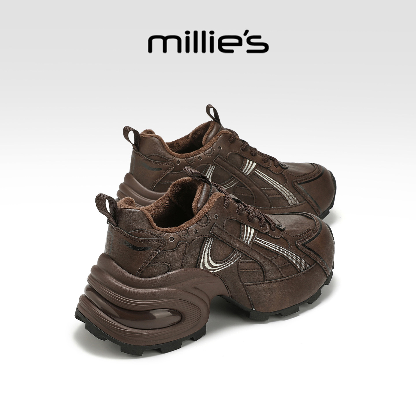 millies妙丽加绒老爹鞋女鞋冬季新款厚底时尚运动鞋增高保暖棉鞋