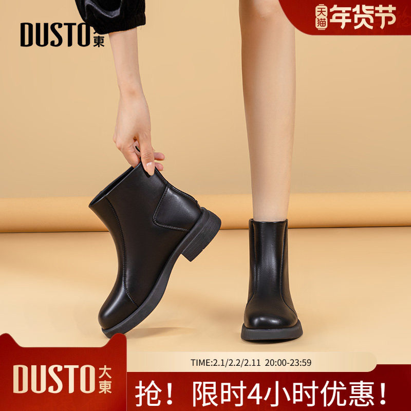 大东时装靴2025冬季加绒保暖粗跟圆头中跟小短靴女鞋0222