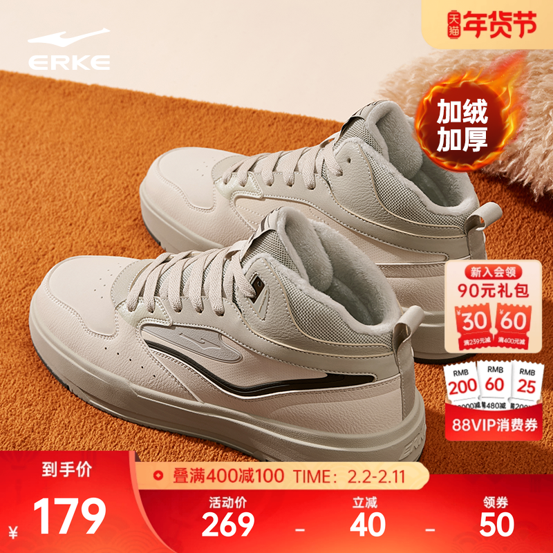 鸿星尔克板鞋男鞋冬季加绒加厚棉鞋男士鞋子百搭休闲鞋高帮运动鞋