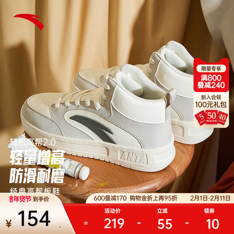 安踏轻松2丨高帮板鞋男学生百搭厚底增高复古运动鞋潮流休闲鞋