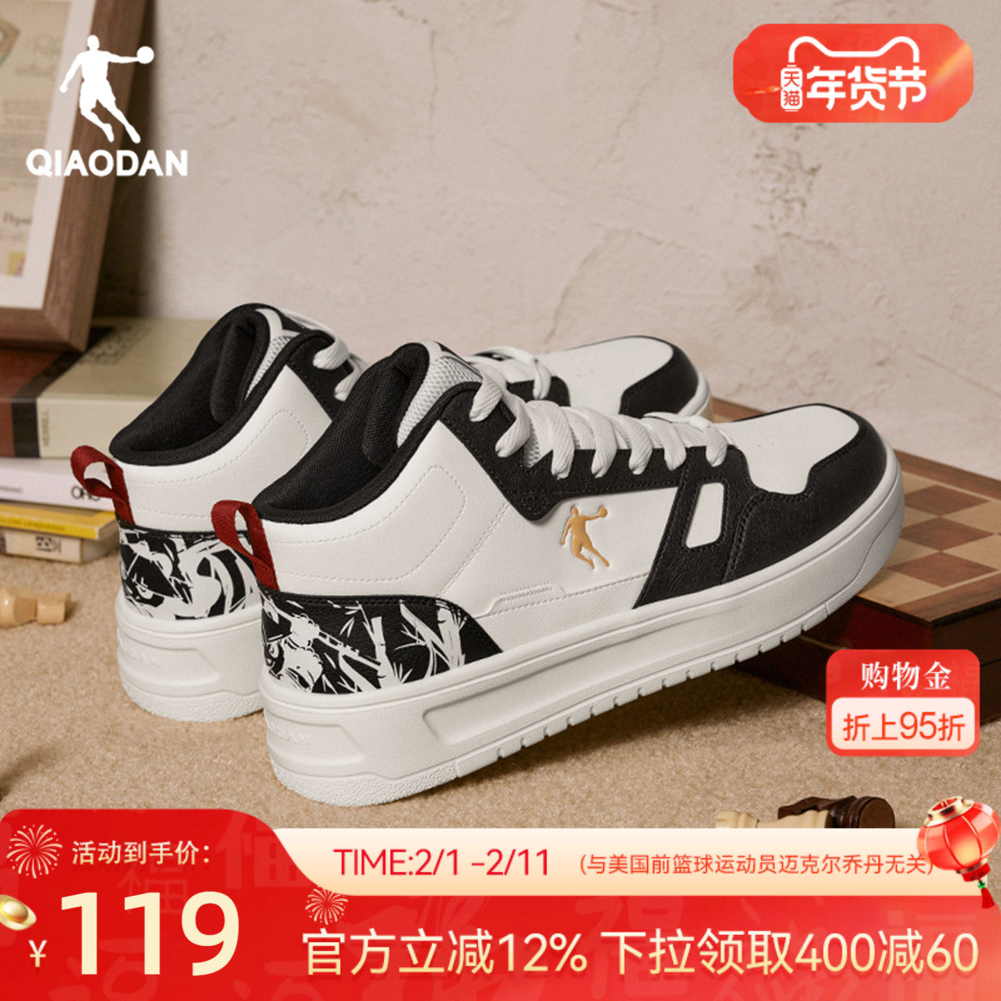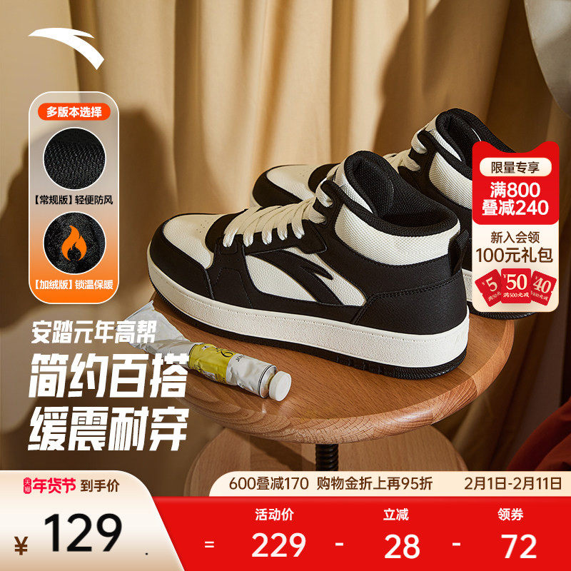 安踏元年丨经典黑白色高帮板鞋男2025冬季新款运动鞋百搭滑板鞋
