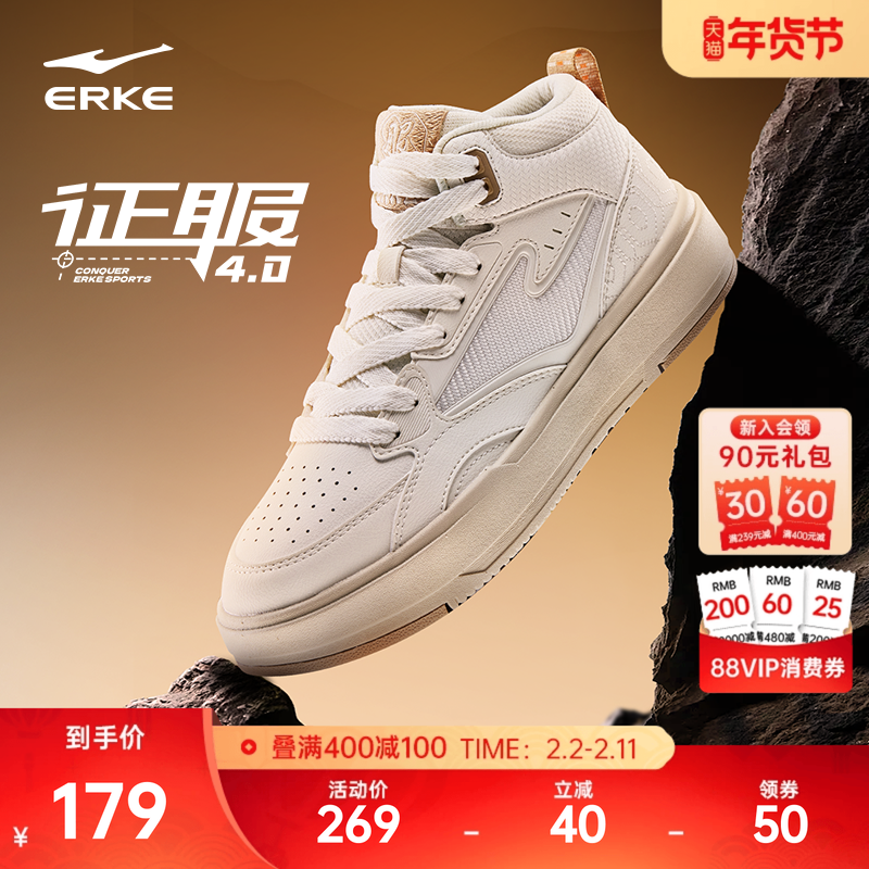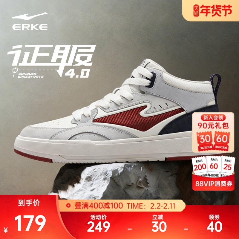 征服4鸿星尔克板鞋男鞋冬季新款青少年休闲鞋男士鞋子高帮运动鞋
