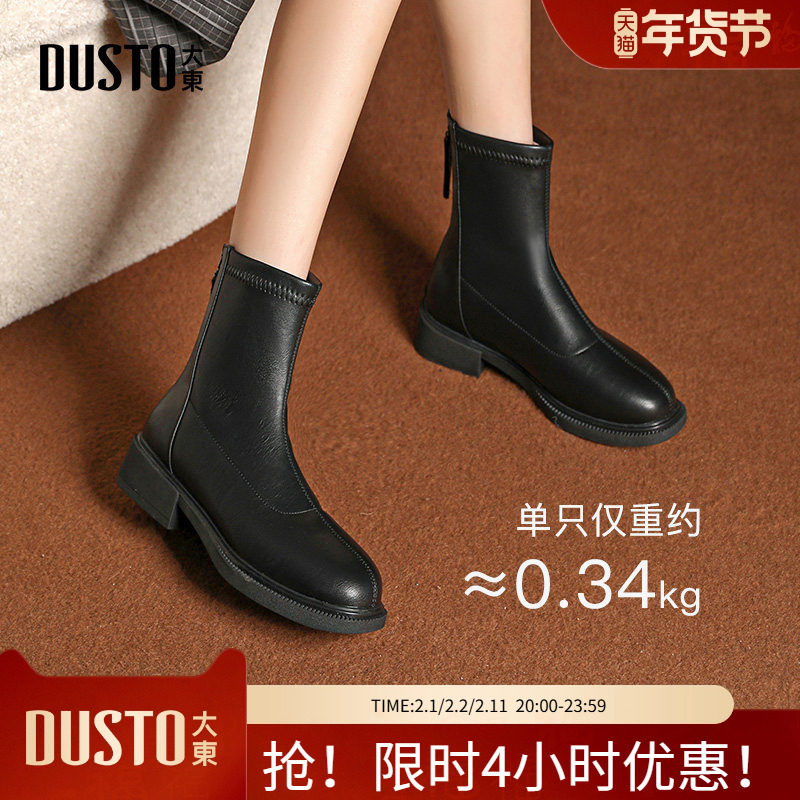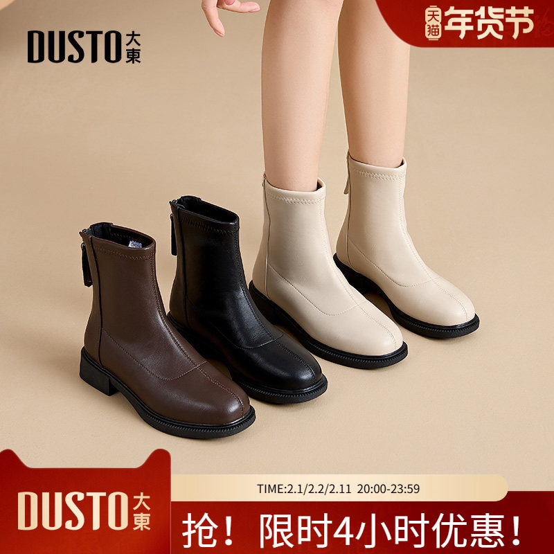 大东妈妈鞋女鞋2025年冬季新款平底低跟侧拉链圆头加绒短靴D5018