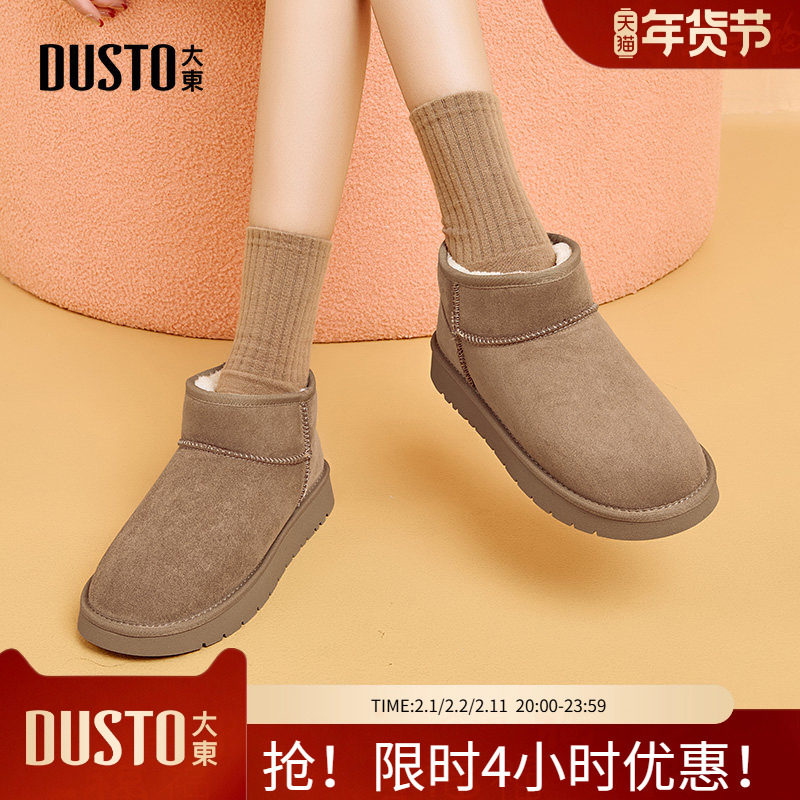 大东雪地靴女鞋2025冬季新款低跟平底套脚保暖短靴D1232C