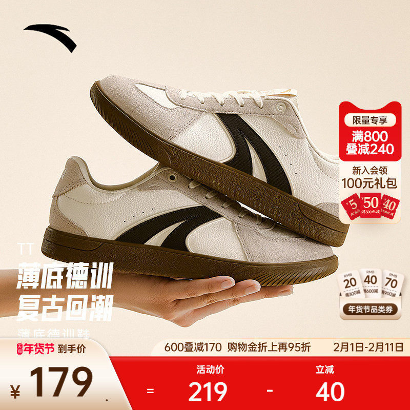 安踏TT鞋丨薄底德训鞋男女足球风T头鞋情侣休闲板鞋赛车鞋运动鞋