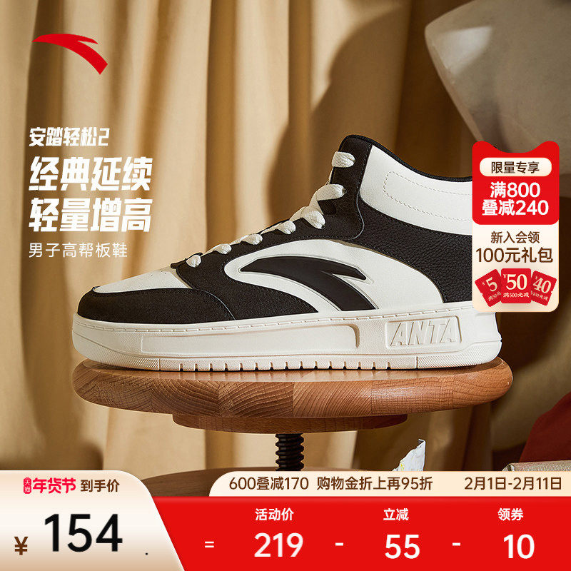 安踏轻松2丨高帮板鞋男学生百搭厚底增高复古运动鞋潮流休闲鞋
