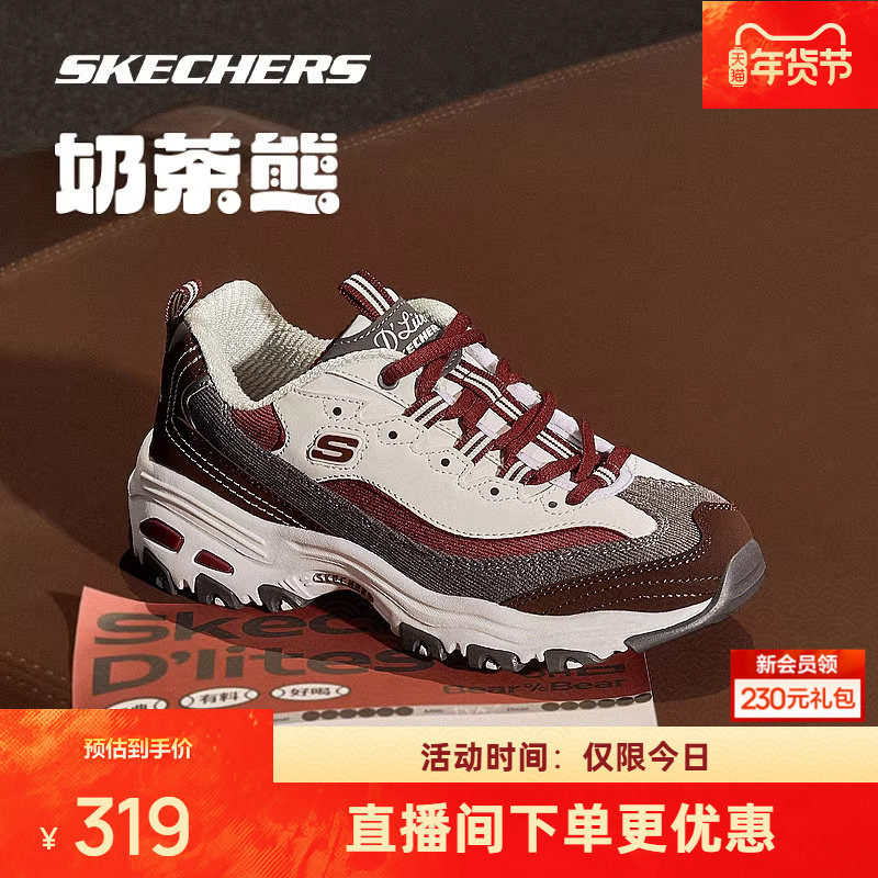 斯凯奇奶茶熊黑糖烤奶新款情侣老爹鞋子男女同款复古运动鞋时尚
