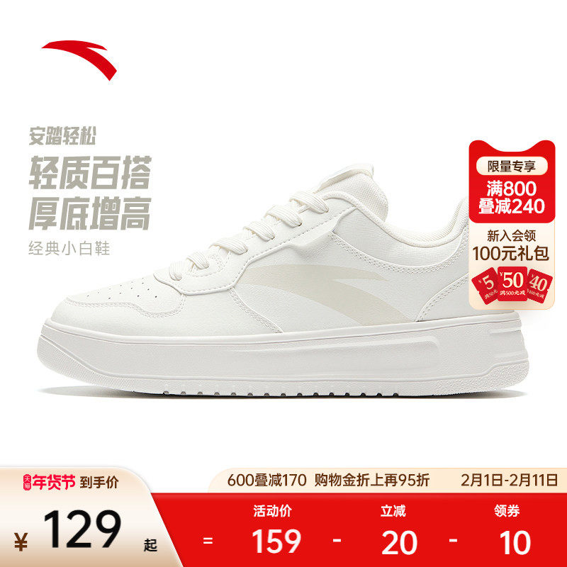 安踏元年小白鞋丨厚底板鞋男学生冬季百搭轻便休闲鞋新年款运动鞋