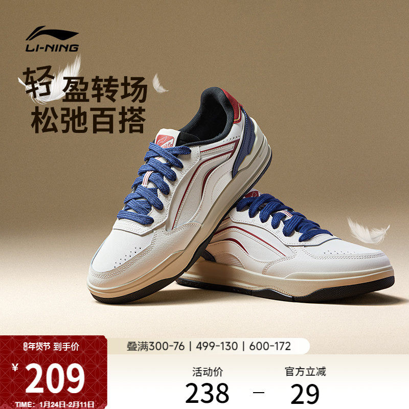 李宁月璃丨板鞋男鞋春季新款小白鞋复古休闲鞋轻便软底运动鞋子男