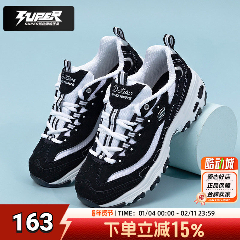 斯凯奇官方旗舰店女鞋加绒熊猫鞋老爹鞋冬季棉鞋女士休闲鞋运动鞋