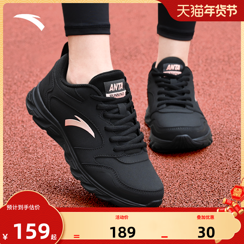 安踏黑色女鞋皮面防水运动鞋新款跑鞋妈妈鞋子防滑女士轻便跑步鞋