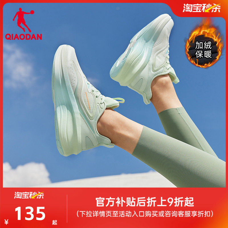 乔丹软底减震跑步鞋女士轻便超轻专业加绒运动鞋青少年初中生棉鞋