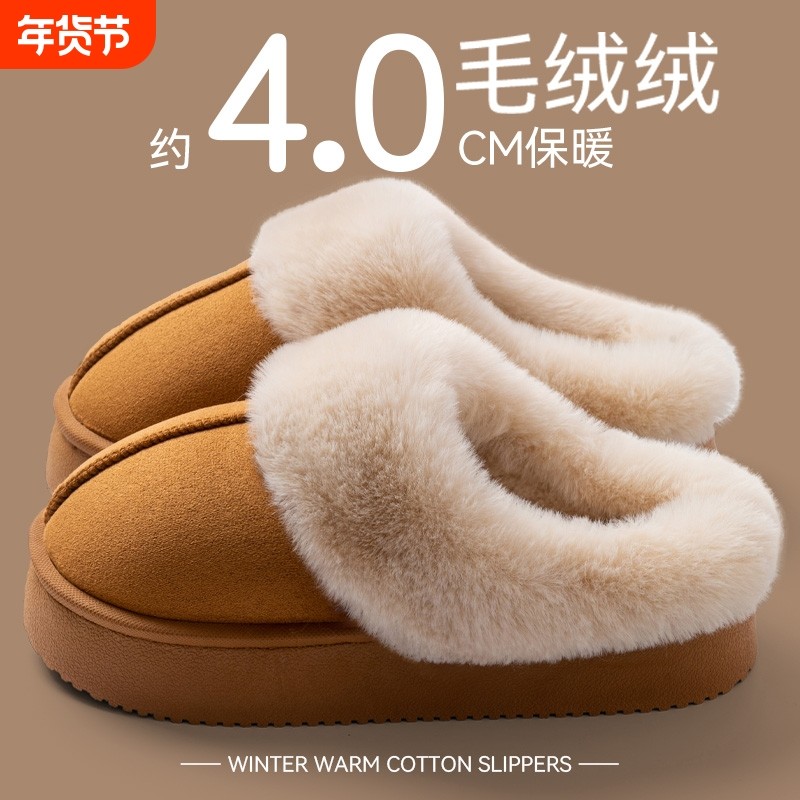厚底棉拖鞋女士家居室内2025新款冬季保暖防滑毛绒踩屎感拖鞋冬男