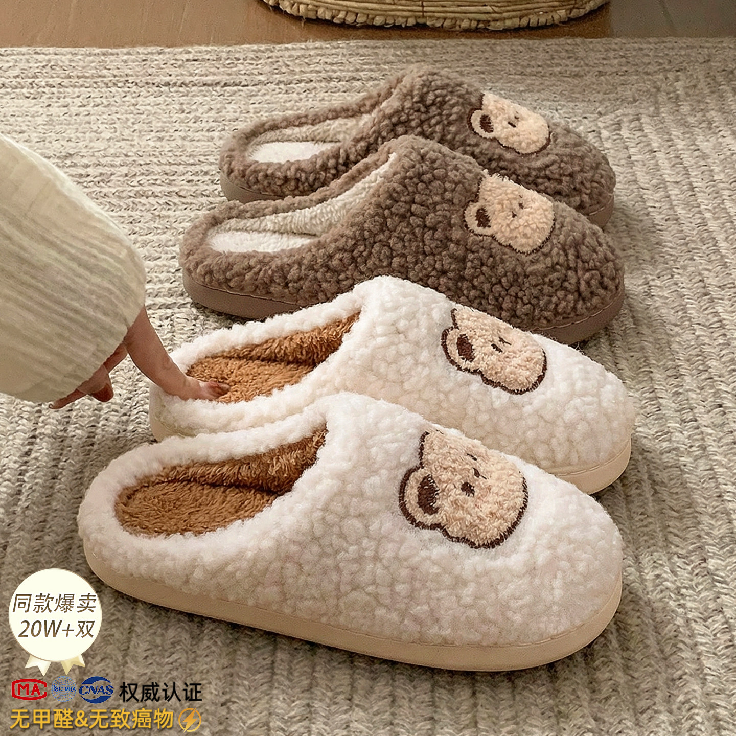 朴西苹果头棉拖鞋女士可爱秋冬季保暖加绒拖鞋男家居室内毛毛拖