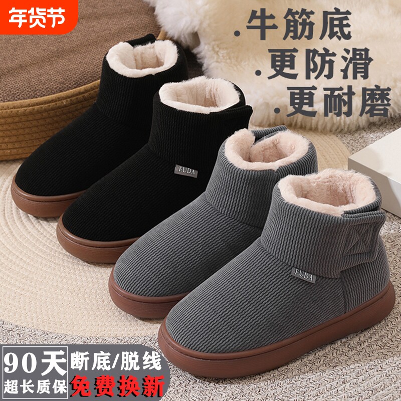 冬季保暖棉拖鞋中老年防滑男款女士加绒加厚外穿室内居家牛筋底鞋