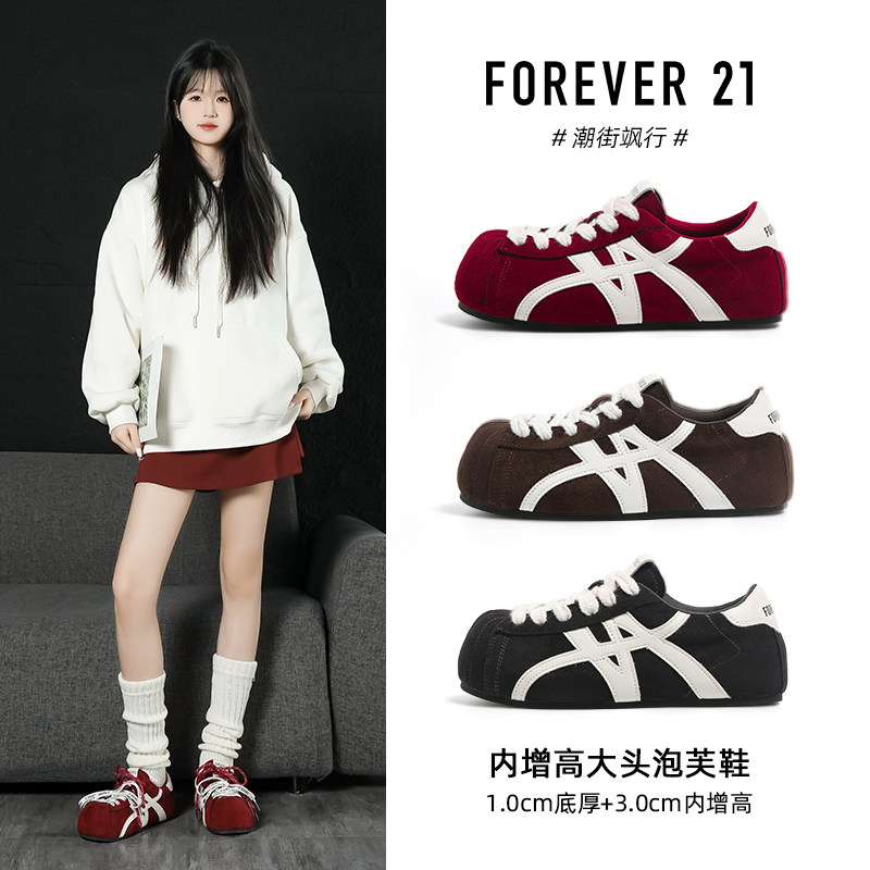 F21红色加绒大头德训鞋女2026新款春季爆款内增高百搭休闲泡芙鞋