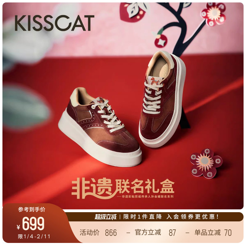 KISSCAT接吻猫2026新款太妃糖厚底德训鞋内增高休闲百搭小白鞋女