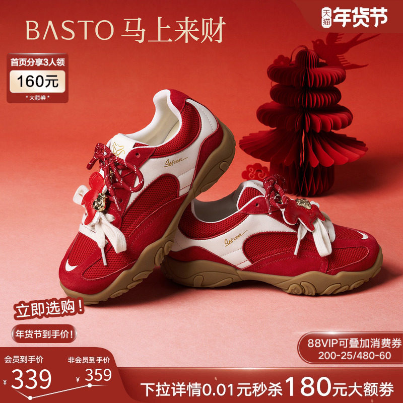 环球新年红色复古德训鞋女款2026春季新款内增高运动鞋子软底板鞋