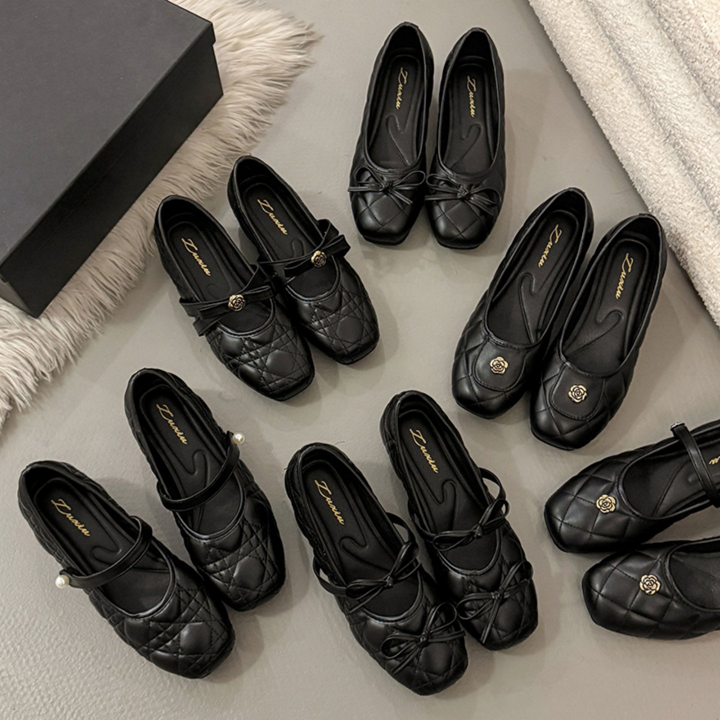 小个子内增高裸色方扣浅口单鞋女2025春夏新款绝美气质通勤平底鞋