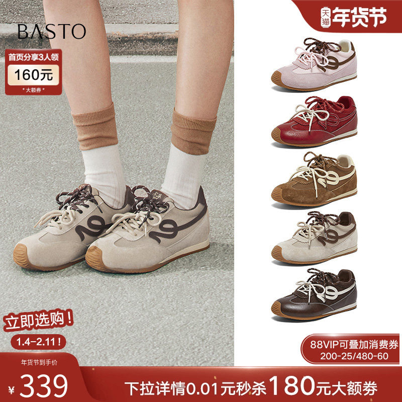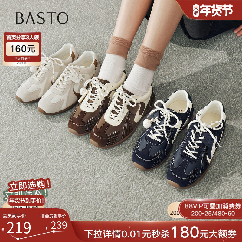 百思图2026春季新款潮酷内增高德训鞋户外运动鞋女休闲鞋UYJ01AM6