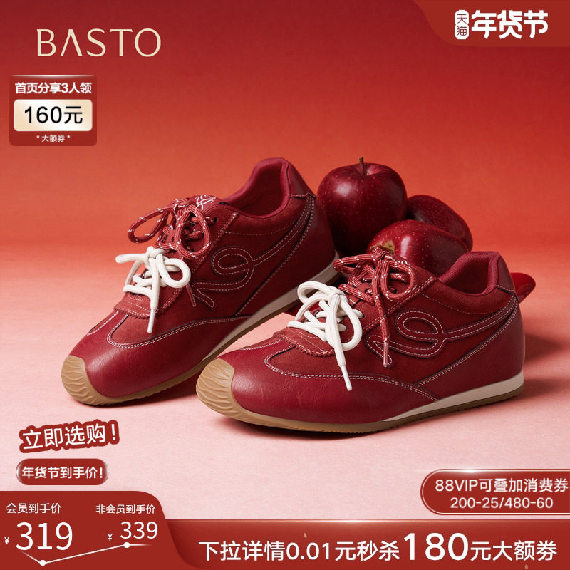 拉夏贝尔红色内增高德训鞋女2025秋冬新款爆款小白鞋运动休闲板鞋