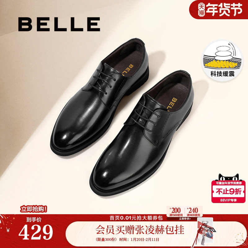 百丽男鞋商务正装结婚鞋男士真皮鞋内增高通勤牛津德比鞋A1095AM3