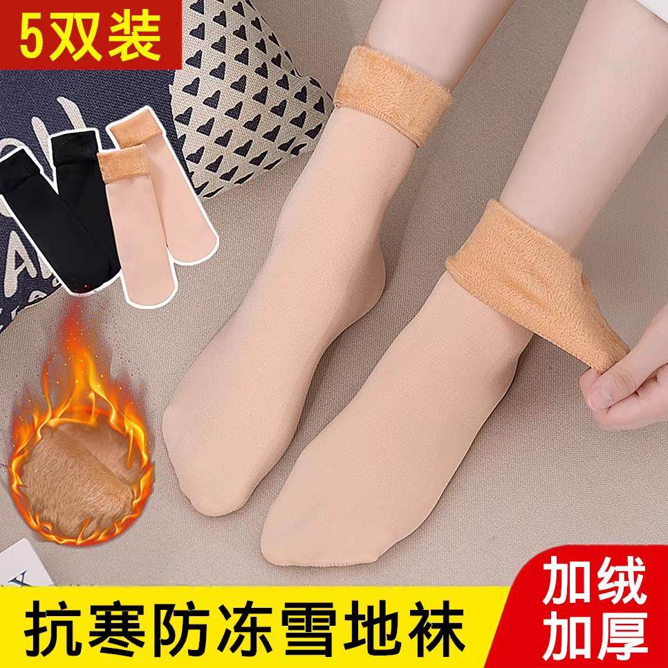 10双装男女通用冬季加绒加厚雪地袜防冻保暖袜子中筒地板袜抗寒