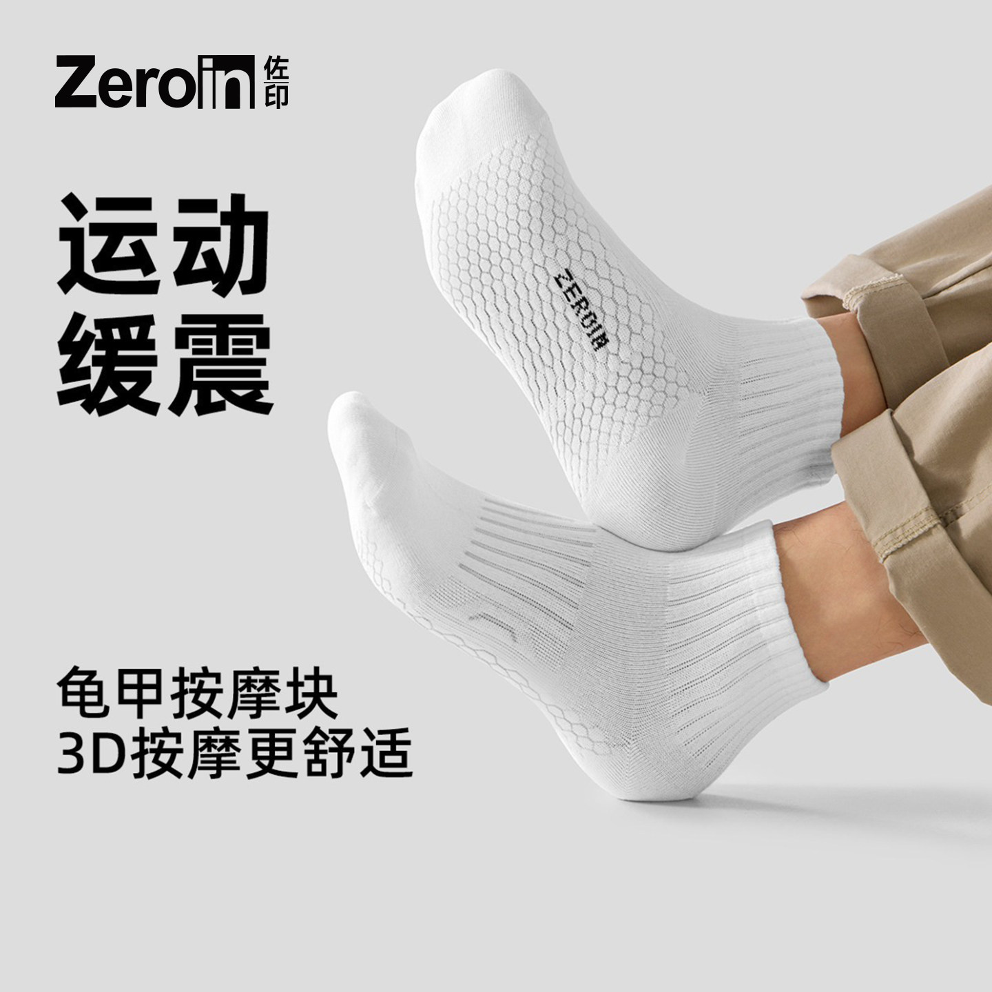 佐印袜子男士短袜秋冬男款白色运动吸汗透气男生防臭10A抗菌棉袜