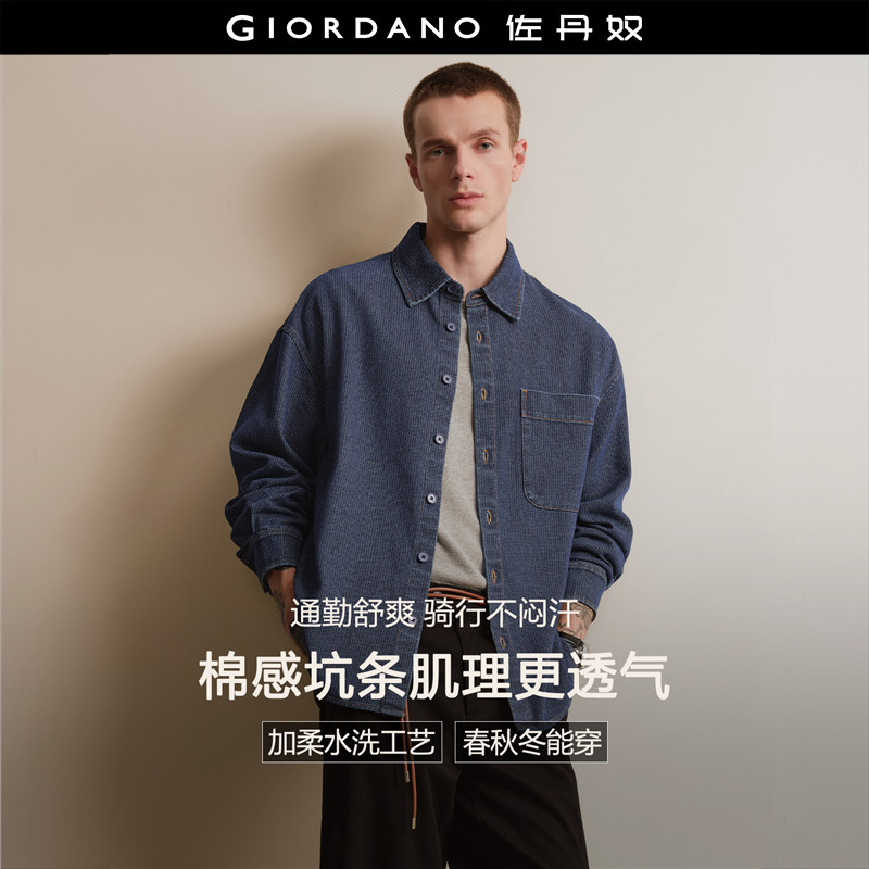 佐丹奴男装2026年春季新款明线工装口袋宽松长袖牛仔衬衫18045002