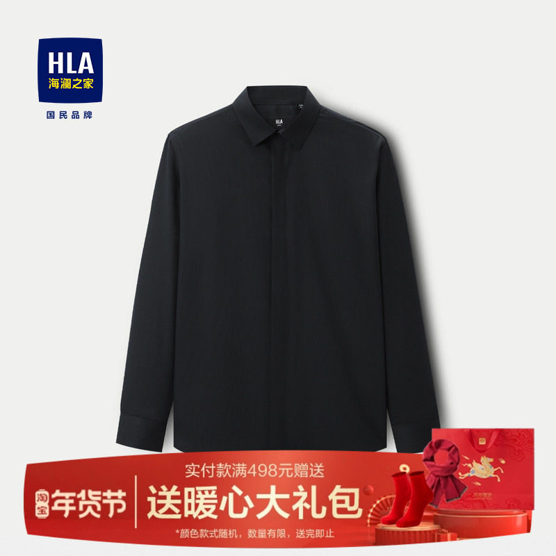 HLA/海澜之家加绒加厚长袖衬衫25秋冬新款保暖免烫商务纯色衬衣男