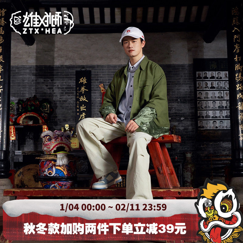 朱铁雄 x HEA联名新款国潮拼接长袖衬衫外套男秋季休闲高级感衬衣