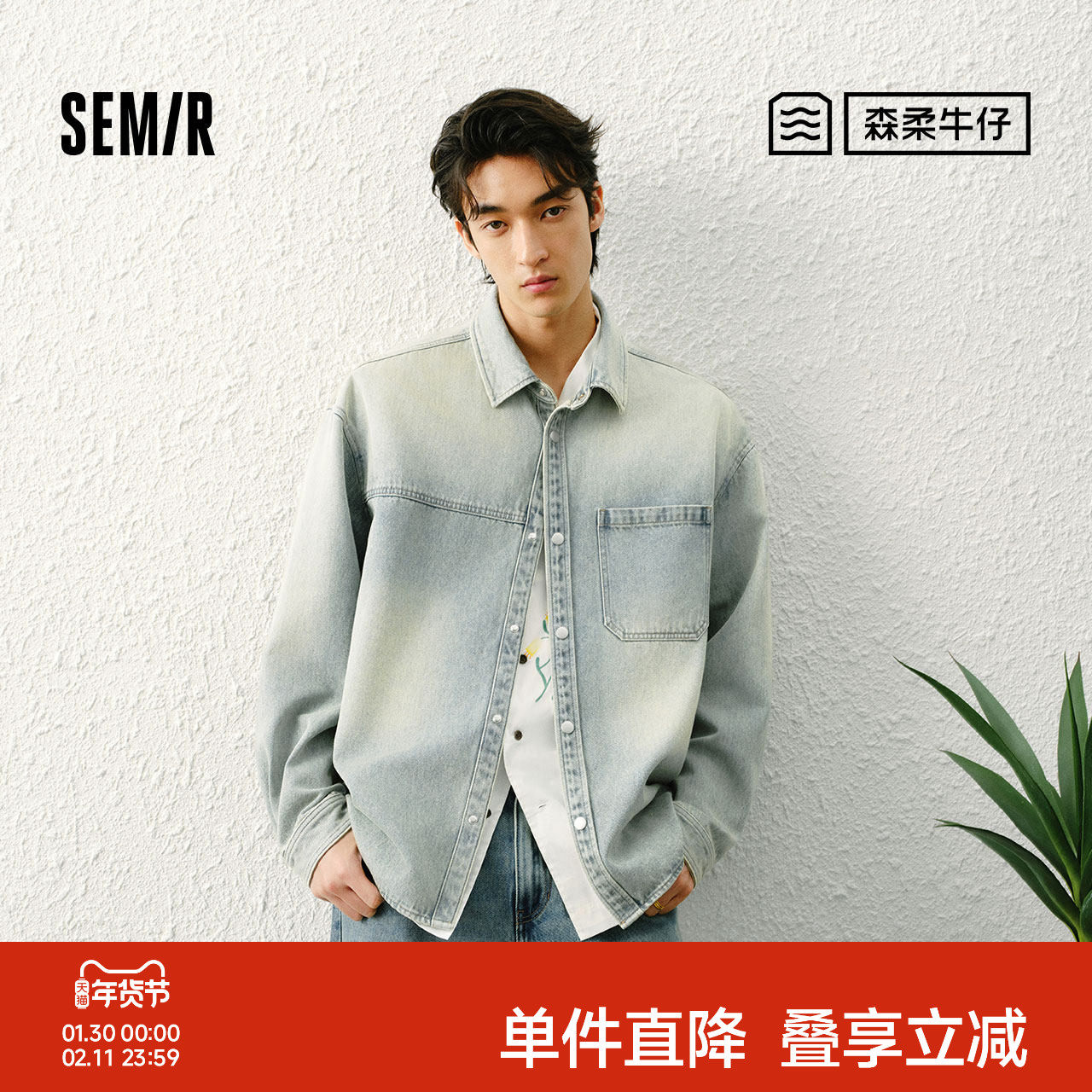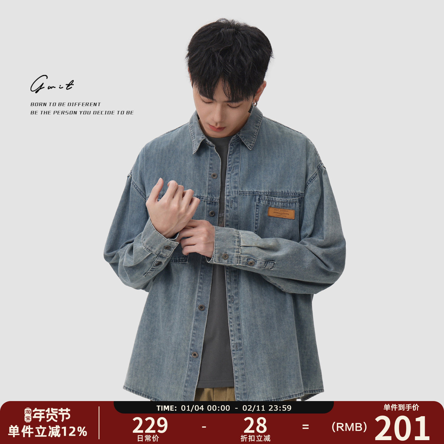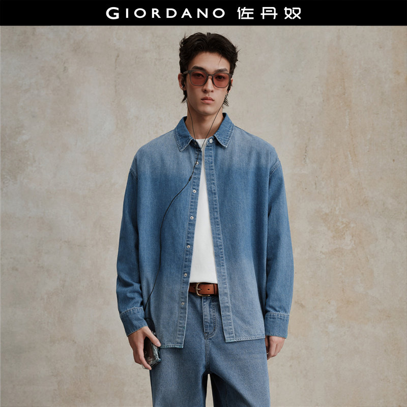 设计师款佐丹奴2026年春新款宽松水洗渐变牛仔衬衫男长袖18045702