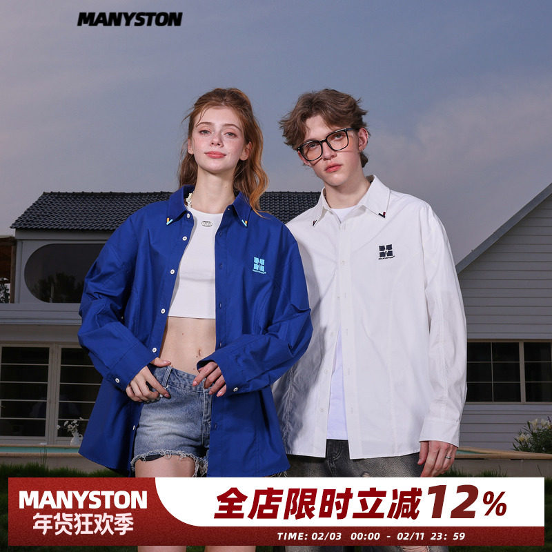 清 MANYSTON美式复古翻领长袖衬衫男款春秋季小众设计感休闲衬衣