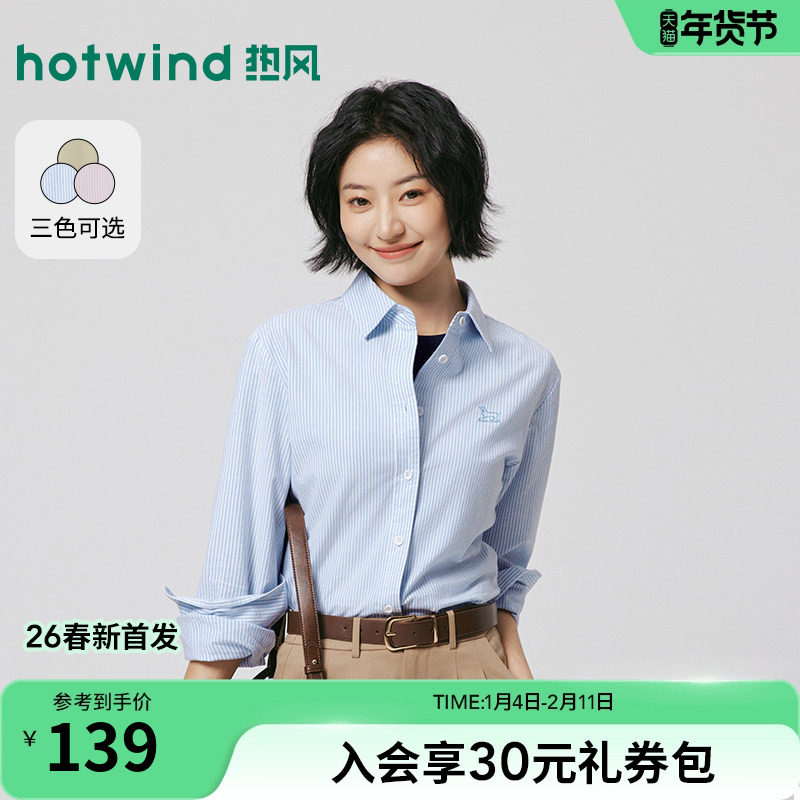 热风女士长袖衬衫内搭打底衫上衣2026年春季新款简约牛津纺衬衫