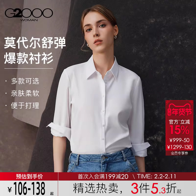 【易打理/亲肤弹力】G2000女士2025秋商场同款通勤抗皱长袖衬衫.