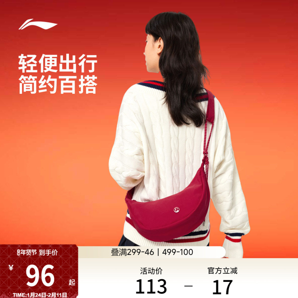 李宁斜挎包女士本命年月牙包官方正品休闲运动新年礼物红色饺子包