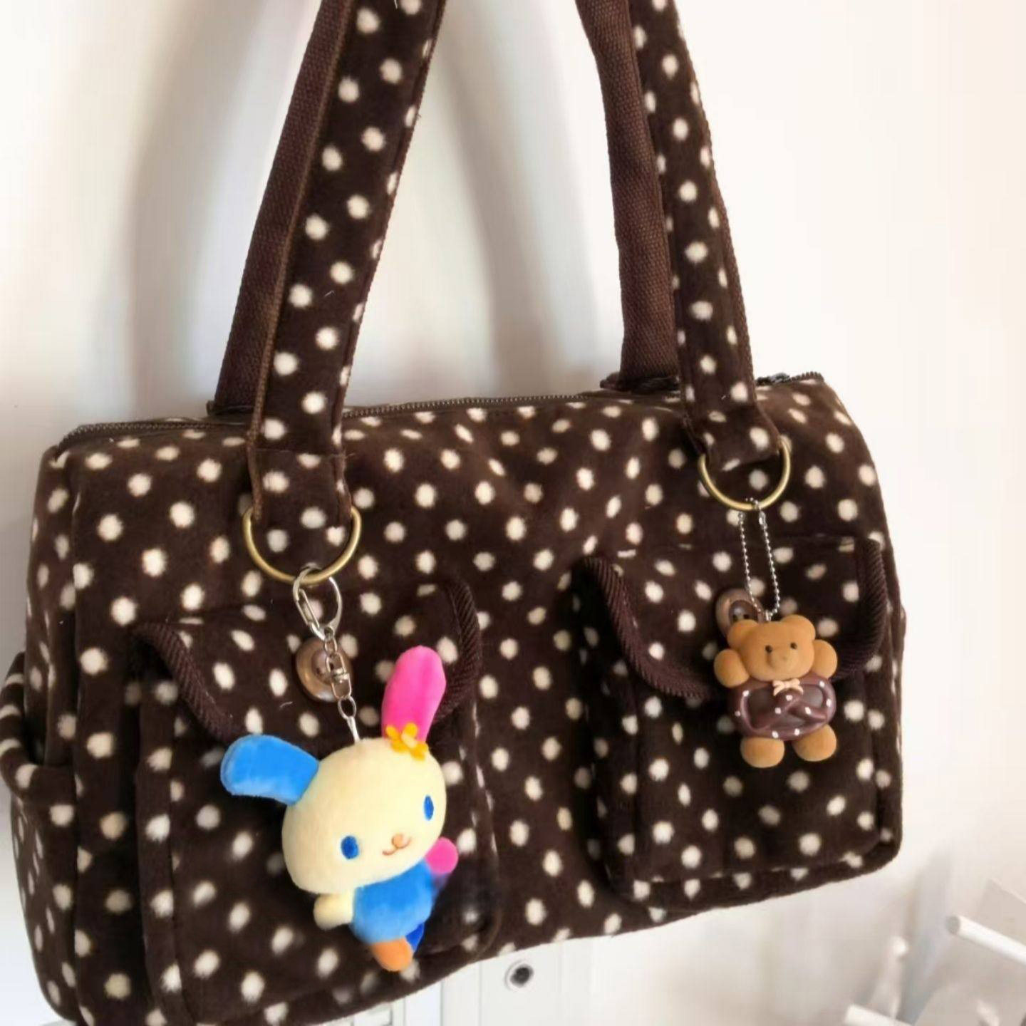 古早味焦糖棕波点手提包2025秋冬新款毛绒绒波士顿单肩包百搭包包