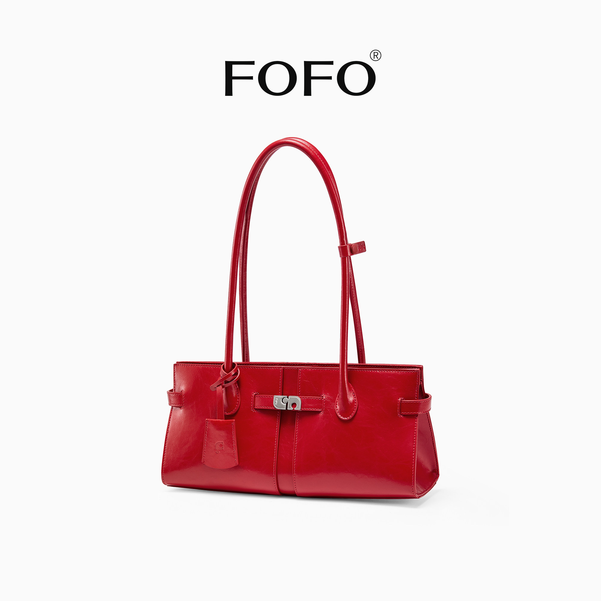 FOFO单肩折叠包设计师新款小众百搭通勤手提包真皮法棍腋下红婚包