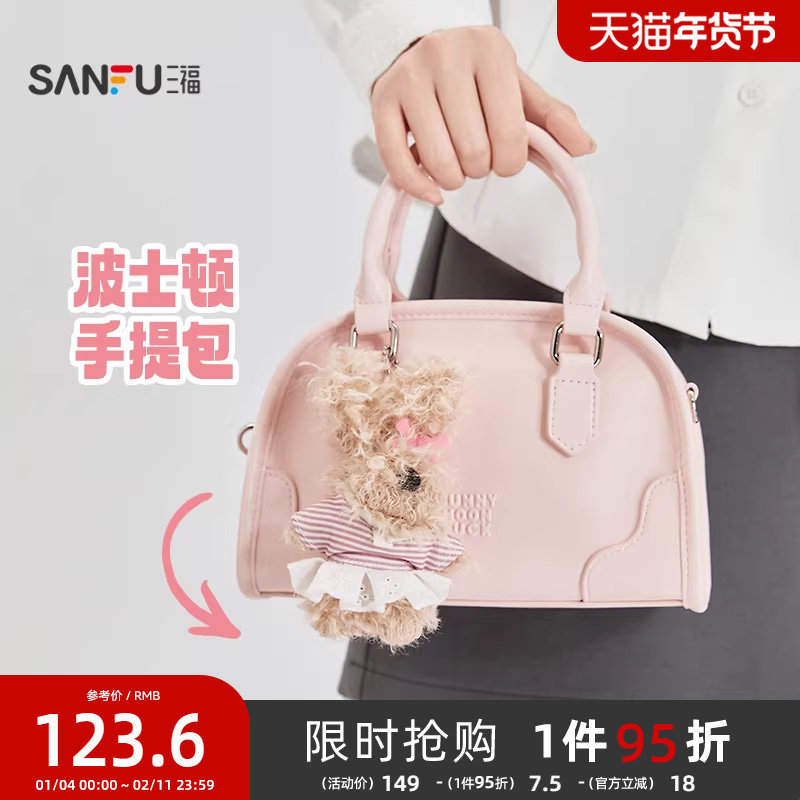 三福手提包冬季学院巴恩小狗挂件波士顿枕型简约女包511393