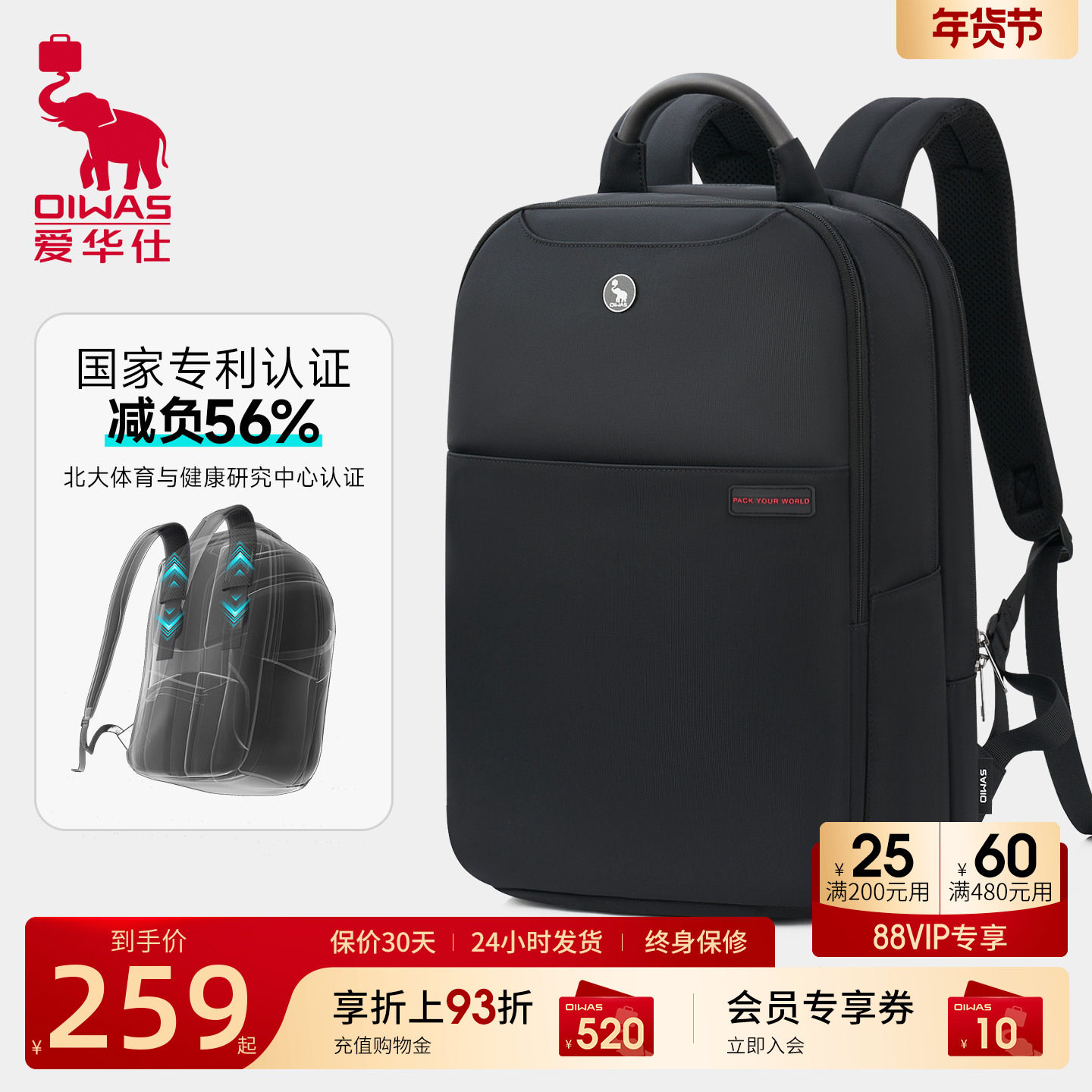 爱华仕大容量双肩包男多隔层科学分仓减重商务通勤电脑休闲背包女
