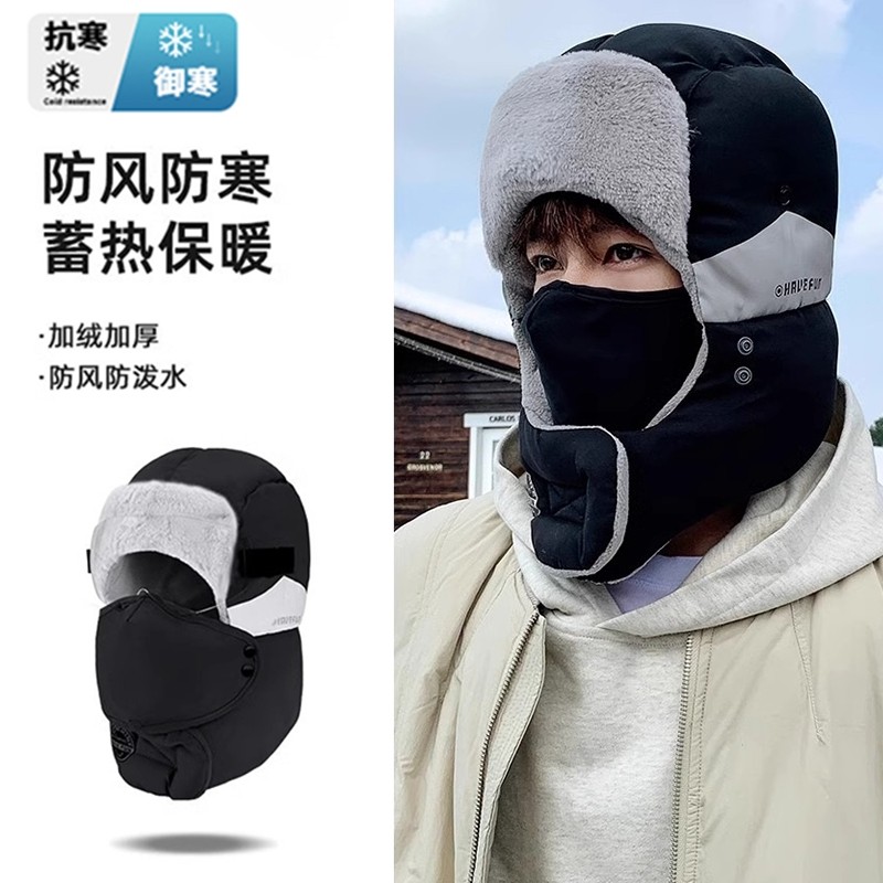 帽子男冬天大头围雷锋帽男士冬季加绒棉帽保暖面罩防寒抗寒骑车