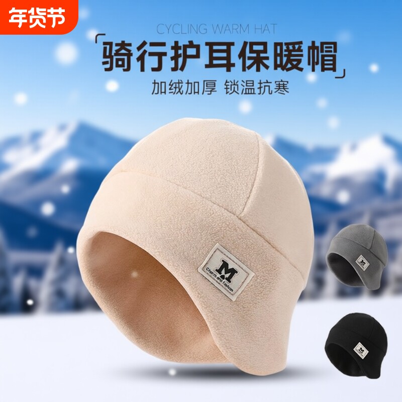 帽子冬季防寒骑行护耳保暖针织帽男加绒加厚防风防寒毛线帽女冷帽