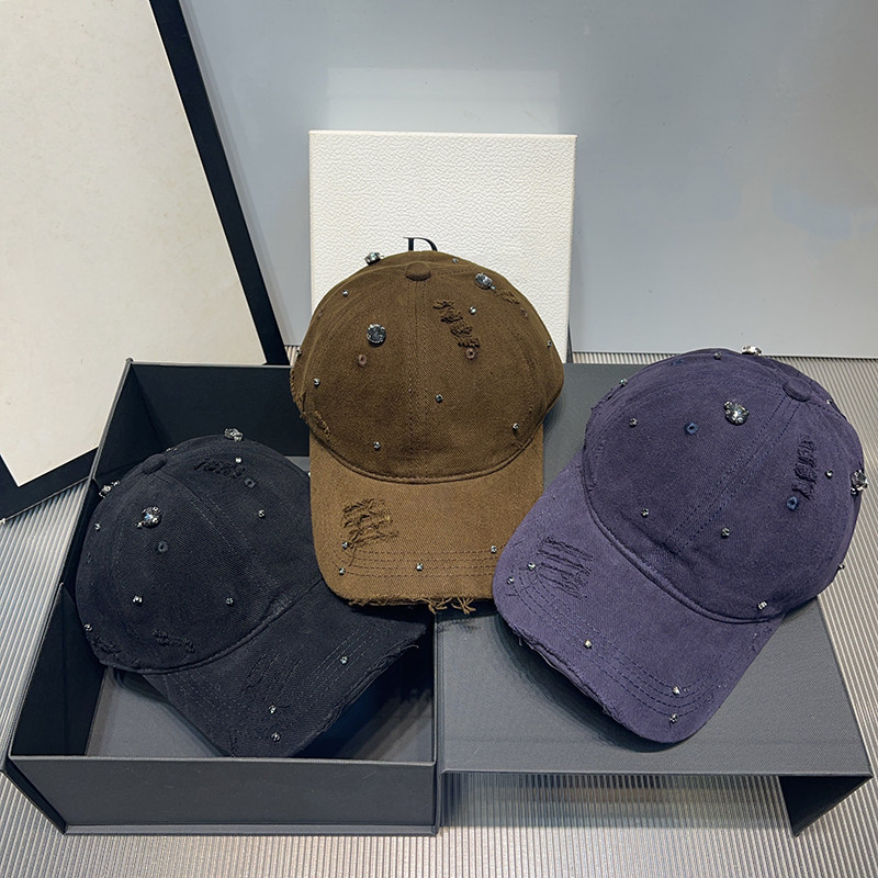 韩版秋冬新款重工水钻鸭舌帽百搭复古水洗破洞棒球帽显脸小保暖帽