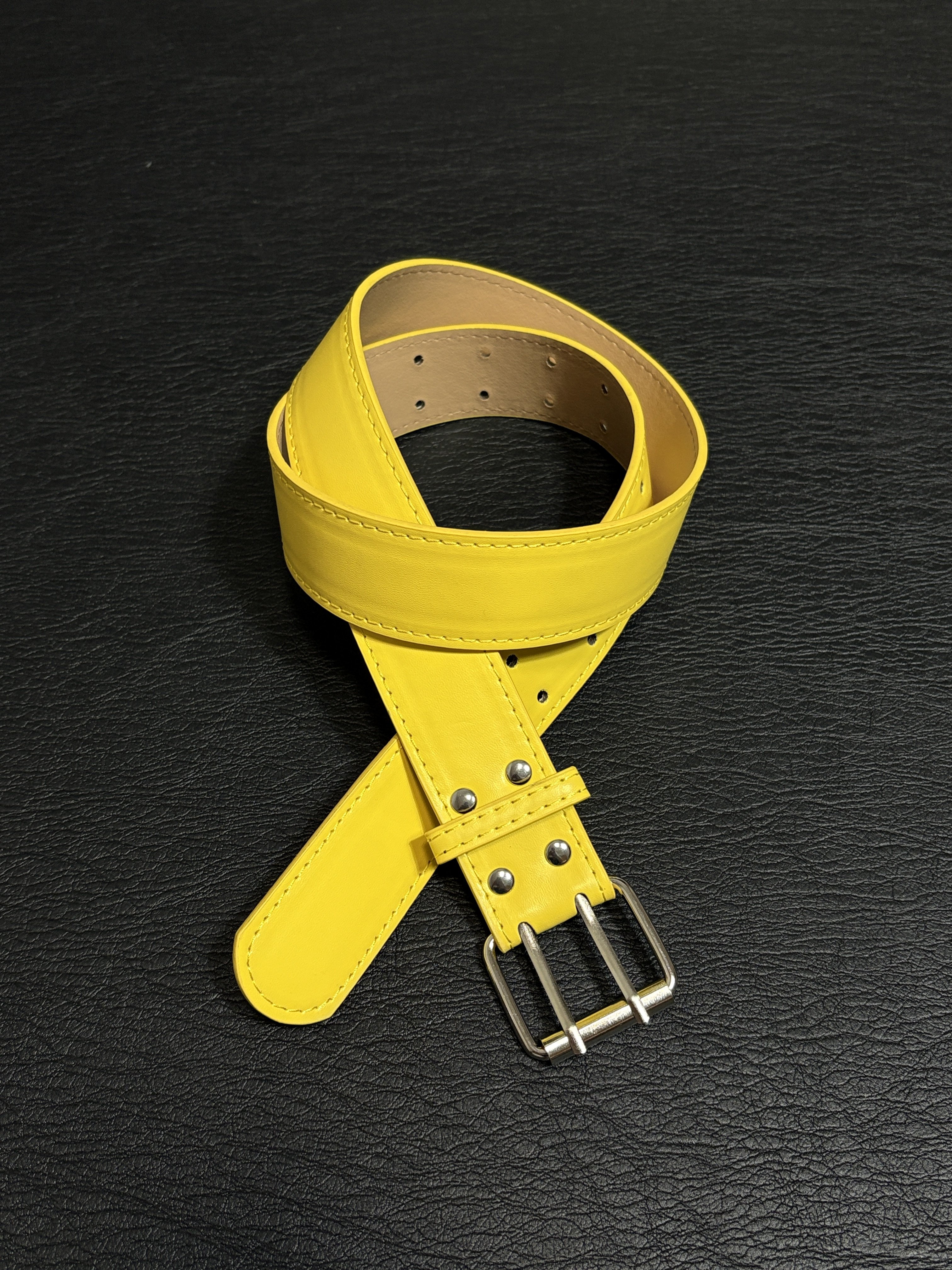 小心袖口 Vintage中古双排扣简约黄色腰带多巴胺亮色y2k皮带配饰